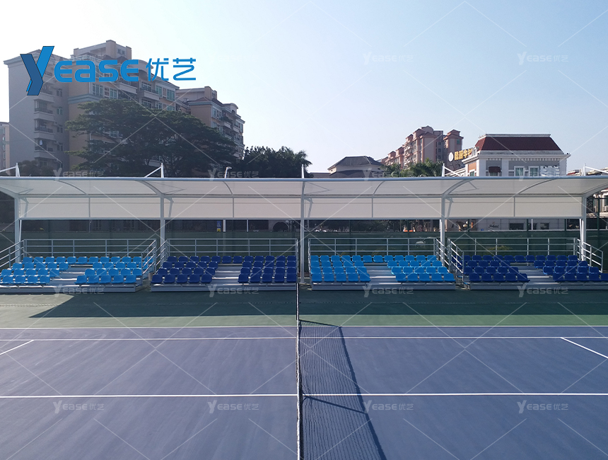 堅固耐用的鋼結構看臺系統(tǒng),滿足戶外場館長期使用與高承載要求。