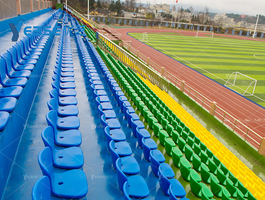 堅固耐用的鋼結構看臺系統(tǒng),滿足戶外場館長期使用與高承載要求。